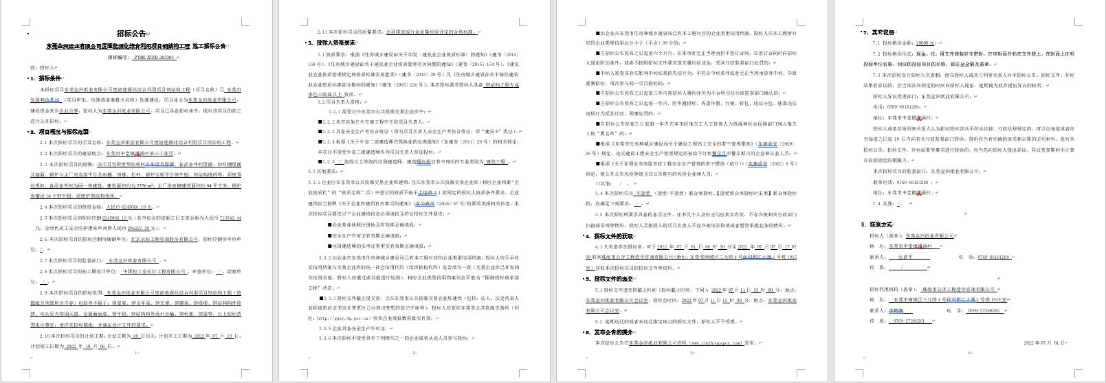 东莞金洲纸业有限公司废渣能源化综合利用项目钢结构工程 施工招标公告 招标编号: ZTHCJZZB-202203