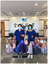 今天上午,金洲纸业特向全体女员工献上了漂亮的康乃馨花束和遮风挡雨的伞,并致以温暖的节日祝福。对我司女员工长期以来在各自的工作岗位上兢兢业业、无私奉献创造的卓越业绩给予充分肯定,对她们铁肩柔情担负起工作与家庭的双重职责和辛勤付出表示高度赞扬。在每一位女员工收到公司赠送的礼物时,脸上布满了喜悦之情,更多的是温暖和感恩。有的时候,一句问候,一声关爱,一份祝福就会使身边的任何一件小事变得更加美好,更加令人感动。
